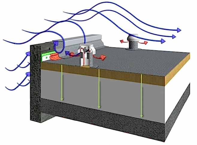 Vakumlu bir çatı rüzgâra maruz kaldığında, membran ile yükü taşıyan alt tabaka arasında negatif basınç oluşur. Bu, vakumlu çatı kaplamamızı sert iklimler için ideal hale getirir.